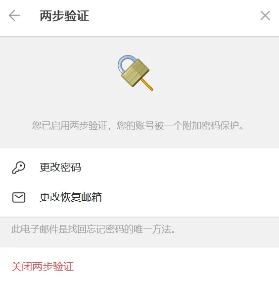 更改或移除恢复邮箱地址(强烈推荐保留恢复邮箱)