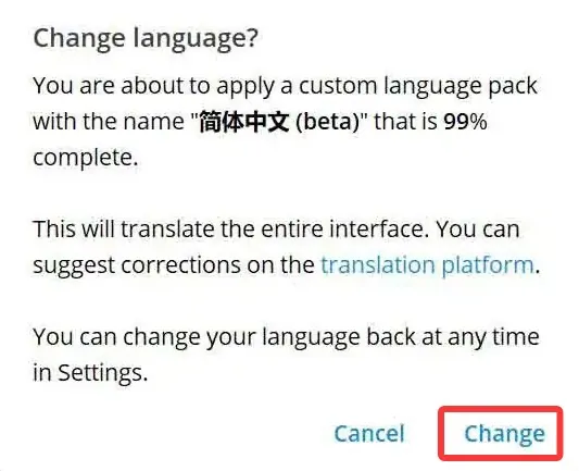 我们强烈建议您先把客户端设置成中文,这样可以轻松看懂某些选项,对您使用账号有很大便捷,不过Telegram没有提供官方中文选项,但是它可以使用导入汉化包的方式,来完成汉化。