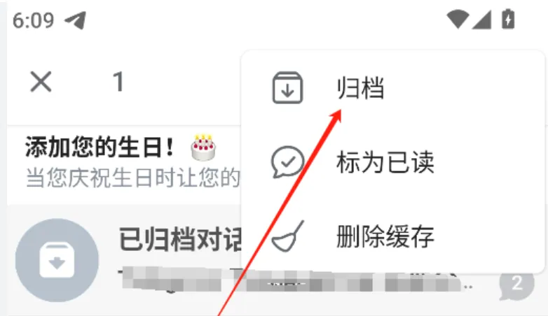 - 在Telegram主界面,向下拉动聊天列表顶部,直到出现“归档”入口。