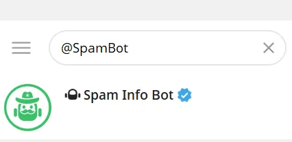 - 在Telegram搜索栏输入@SpamBot,进入机器人聊天界面。