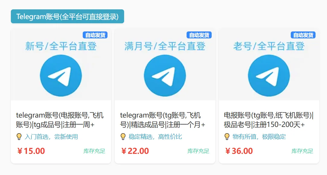 如果需要快速获取一个稳定账号,可以考虑从可靠平台购买已注册的成品号,推荐:便宜的telegram账号购买平台。有新号、满月号和老号出售,均为成品api账号,绝对难以登录的临时手机号码api号,还有售后和完整的使用教程帮您解决各种问题。